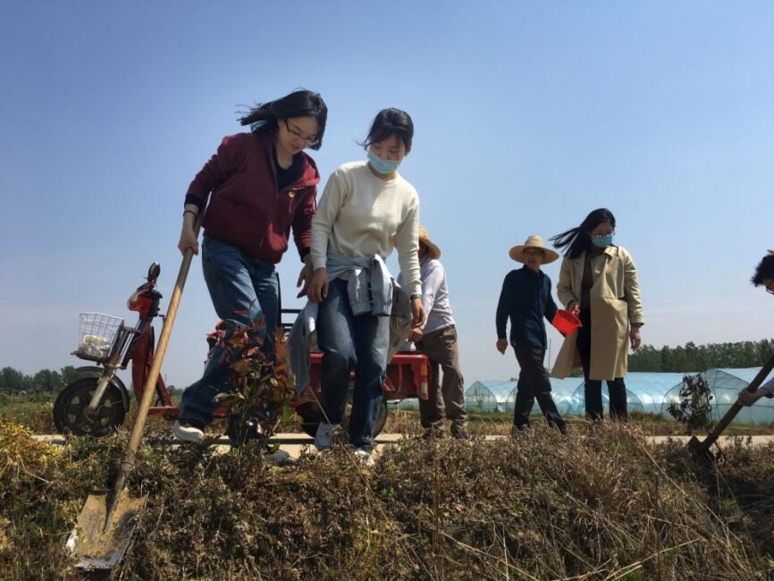 春風(fēng)拂面、艷陽當(dāng)空,團(tuán)員青年們紛紛扛起鐵鍬、拎起水桶、提起樹苗,沿著村子里的水泥路邊親手植下一顆顆紅葉石楠。有的揮鍬鏟土、挖坑栽樹,有的扶苗填土、踩實澆水,每道工序都一絲不茍,四處都是熱火朝天的勞動場面??每脴涿缬L(fēng)而立,承載著大家扮美鄉(xiāng)村的美好愿望,展現(xiàn)了國貿(mào)青年的青春風(fēng)貌。