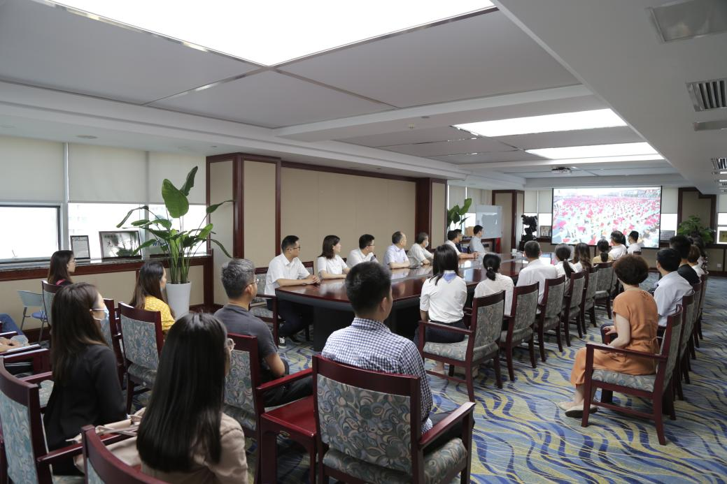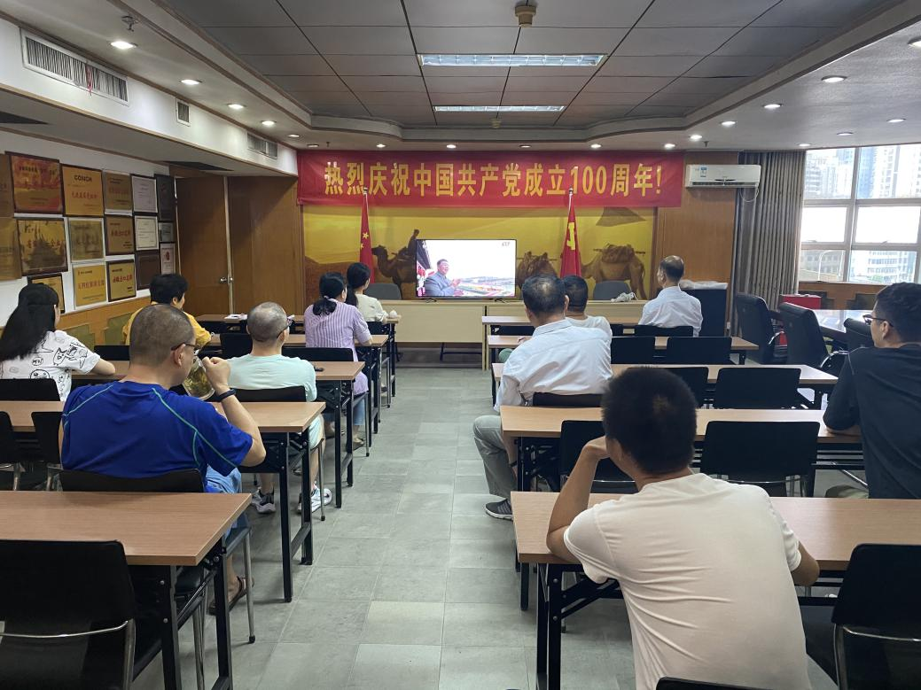7月1日上午8時,慶祝中國共產(chǎn)黨成立100周年大會在北京天安門廣場隆重舉行,中共中央總書記、國家主席、中央軍委主席習(xí)近平發(fā)表重要講話。安徽國貿(mào)及所屬各單位紛紛組織集中收看大會直播盛況。