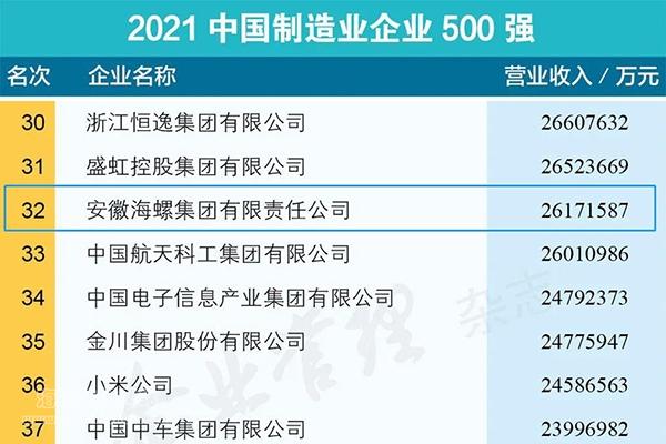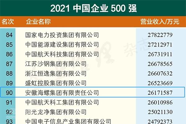 2021中國企業(yè)500強(qiáng)揭榜 海螺集團(tuán)名列第90位